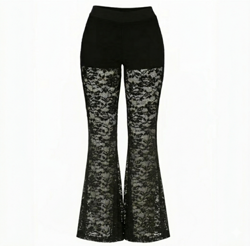 Calça flaire de renda com short acoplado em poliamida luxo .
