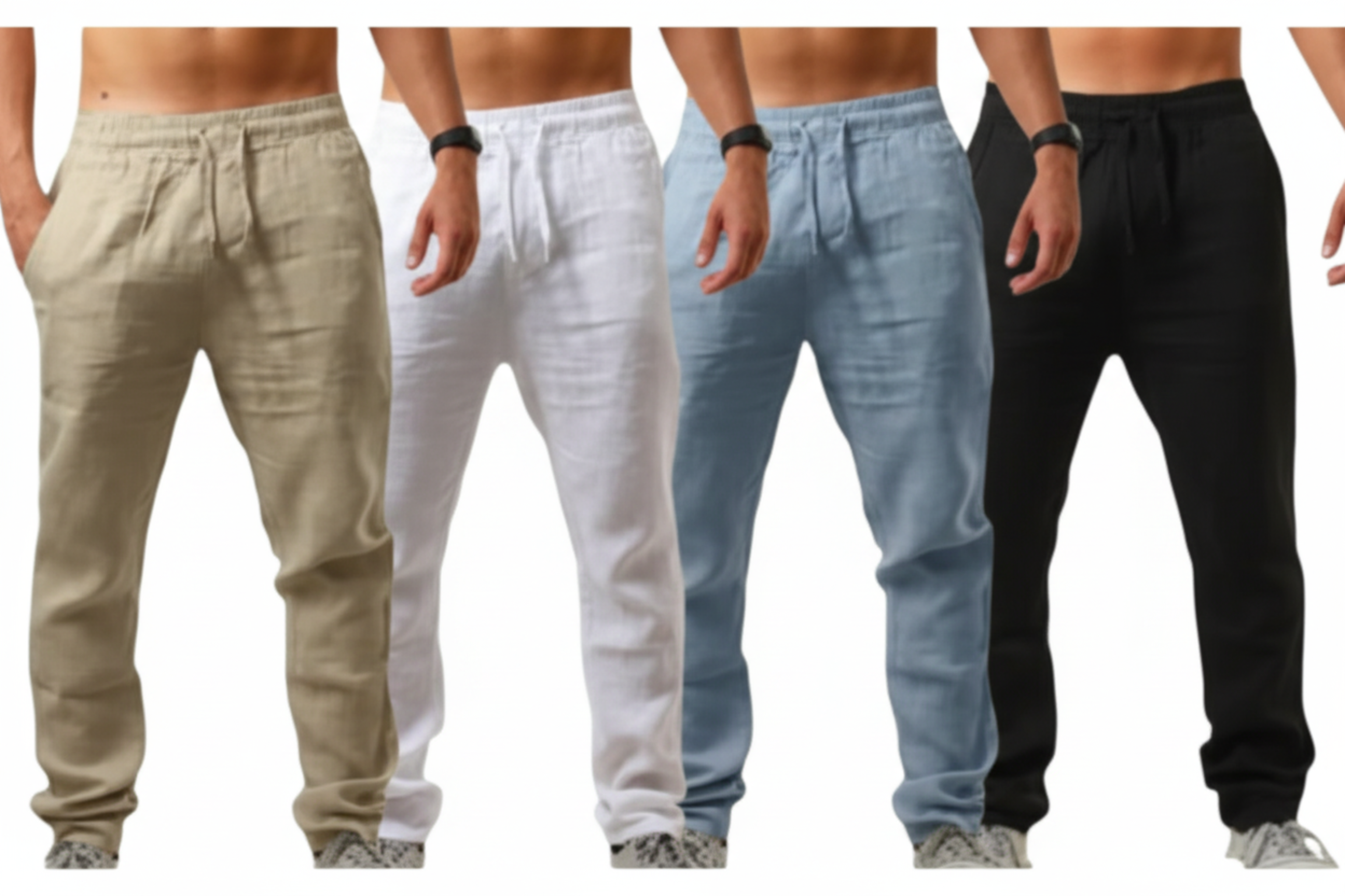 Calça de linho reta casual.